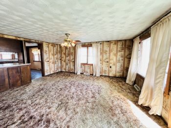 Tract #3: Bedford stone house with basement & attached garage on 0.56 acres, m/l. House has 1,779 sq. ft. and offers 3 to 4 bedrooms, large bathroom, kitchen / dining area, living room & large utility room. House has carpet & vinyl flooring & appears to have some original hardwood floors underneath. House has a new roof, double-pane replacement windows, fuel oil furnace, county water, concrete drive & 2 storage sheds outback. This house would make a great personal residence, flip house or great rental property.