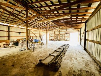 Tract #4: 45’ x 134' Heavy duty commercial building on 1.26 acres, m/l, ideal for many types of businesses or multiple businesses. Building has brick / block exterior, new metal roof, heavy-duty concrete floor, overhead steel I-beam supports, 5 overhead doors & large gravel parking / circle drive. Approx 1,365 Sq ft +/- of this building was a former restaurant w/ 2 half baths, large bar, furnace & overhead door. The building will need to have the electric service reconnected. Former fuel tank on the property has been removed and/or remediated & found satisfactory per EPA letter.