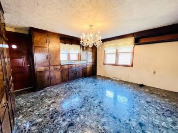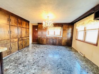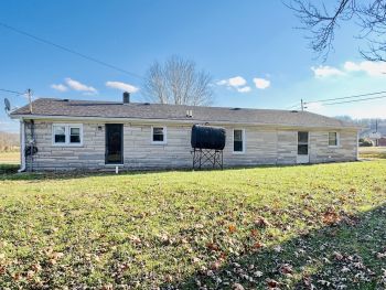 Tract #3: Bedford stone house with basement & attached garage on 0.56 acres, m/l. House has 1,779 sq. ft. and offers 3 to 4 bedrooms, large bathroom, kitchen / dining area, living room & large utility room. House has carpet & vinyl flooring & appears to have some original hardwood floors underneath. House has a new roof, double-pane replacement windows, fuel oil furnace, county water, concrete drive & 2 storage sheds outback. This house would make a great personal residence, flip house or great rental property.