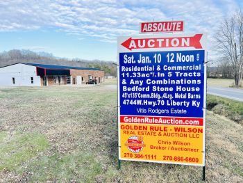 LOCATION: 4744 W. Highway 70, Liberty, KY - just West of Liberty, KY, with long frontage on Highway 70 & Canoe Creek Road. Auction Banners Posted. AUCTION WILL BE HELD INSIDE MAIN BLDG.