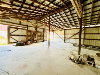 Tract #4: 45’ x 134' Heavy duty commercial building on 1.26 acres, m/l, ideal for many types of businesses or multiple businesses. Building has brick / block exterior, new metal roof, heavy-duty concrete floor, overhead steel I-beam supports, 5 overhead doors & large gravel parking / circle drive. Approx 1,365 Sq ft +/- of this building was a former restaurant w/ 2 half baths, large bar, furnace & overhead door. The building will need to have the electric service reconnected. Former fuel tank on the property has been removed and/or remediated & found satisfactory per EPA letter.