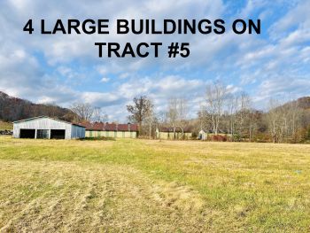 Tract #5: 6.23 AC, m/l, with 4 metal storage buildings / barns & long frontage on Hwy 70. Main Building is 36’ x 72’ w/ concrete floor & front part partially finished w/ 2 overhead doors. Another 27’ x 88’ Bldg w/ concrete floor, another 20’ x 40’ Bldg w/ dirt floor & stalls, another 20’ x 40’ Bldg w/ concrete floor. These Bldgs need some cosmetic work, but frames appear good and square.