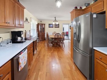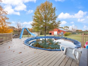 The well-maintained home features 3 bedrooms and 2 full baths with an inviting open layout. The kitchen and dining area showcase custom oak cabinetry and stylish finishes that blend charm with functionality. Hand-scraped hardwood floors flow throughout much of the main level, and the spacious living room is perfect for gatherings. The large primary suite includes walk-in closets with custom organizers and an ensuite bathroom designed for comfort and convenience. Additional highlights include central heat and air, a generous utility/laundry room, an attached garage, and a full unfinished basement—ideal for storage or future expansion. Outside, the property shines with its incredible outdoor living spaces. Enjoy the covered front and back porches, a large grilling deck, and your very own swimming pool for summer fun. The barn is equipped with stalls for horses but is currently being used as a large chicken coop - offering flexibility for whatever your hobby farm needs may be. The land is fenced and offers plenty of room for gardening, small livestock, and outdoor activities, making it a true mini farm dream come true.