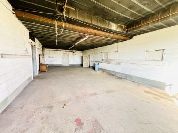 Tract #4: 45’ x 134' Heavy duty commercial building on 1.26 acres, m/l, ideal for many types of businesses or multiple businesses. Building has brick / block exterior, new metal roof, heavy-duty concrete floor, overhead steel I-beam supports, 5 overhead doors & large gravel parking / circle drive. Approx 1,365 Sq ft +/- of this building was a former restaurant w/ 2 half baths, large bar, furnace & overhead door. The building will need to have the electric service reconnected. Former fuel tank on the property has been removed and/or remediated & found satisfactory per EPA letter.
