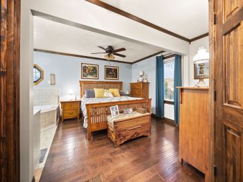 The well-maintained home features 3 bedrooms and 2 full baths with an inviting open layout. The kitchen and dining area showcase custom oak cabinetry and stylish finishes that blend charm with functionality. Hand-scraped hardwood floors flow throughout much of the main level, and the spacious living room is perfect for gatherings. The large primary suite includes walk-in closets with custom organizers and an ensuite bathroom designed for comfort and convenience. Additional highlights include central heat and air, a generous utility/laundry room, an attached garage, and a full unfinished basement—ideal for storage or future expansion. Outside, the property shines with its incredible outdoor living spaces. Enjoy the covered front and back porches, a large grilling deck, and your very own swimming pool for summer fun. The barn is equipped with stalls for horses but is currently being used as a large chicken coop - offering flexibility for whatever your hobby farm needs may be. The land is fenced and offers plenty of room for gardening, small livestock, and outdoor activities, making it a true mini farm dream come true.